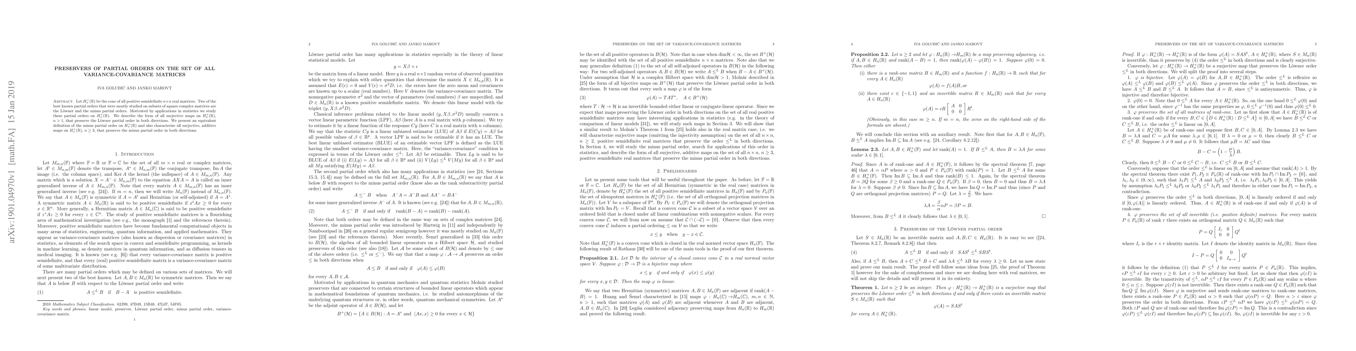 Let $H_{n}^{+}(\mathbb{R})$ be the cone of all positive semidefinite $n\times n$ real matrices. Two of the best known partial orders that were mostly studied on subsets of square complex matrices are the L\"owner and the minus partial orders. Motivated by applications in statistics we study these partial orders on $H_{n}^{+}(\mathbb{R})$. We describe the form of all surjective maps on $H_{n}^{+}(\mathbb{R})$, $n>1$, that preserve the L\"owner partial order in both directions. We present an equivalent definition of the minus partial order on $H_{n}^{+}(\mathbb{R})$ and also characterize all surjective, additive maps on $H_{n}^{+}(\mathbb{R})$, $n\geq3$, that preserve the minus partial order in both directions.