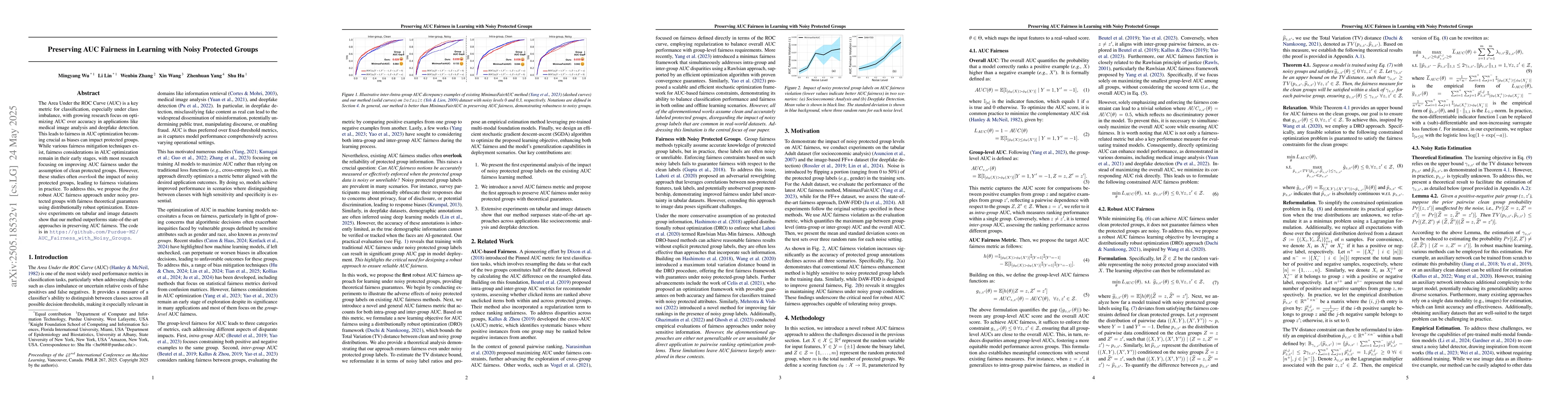 Researchers propose a new method to preserve fairness in classification metrics like AUC under noisy protected groups, outperforming existing approaches in experiments on tabular and image datasets.