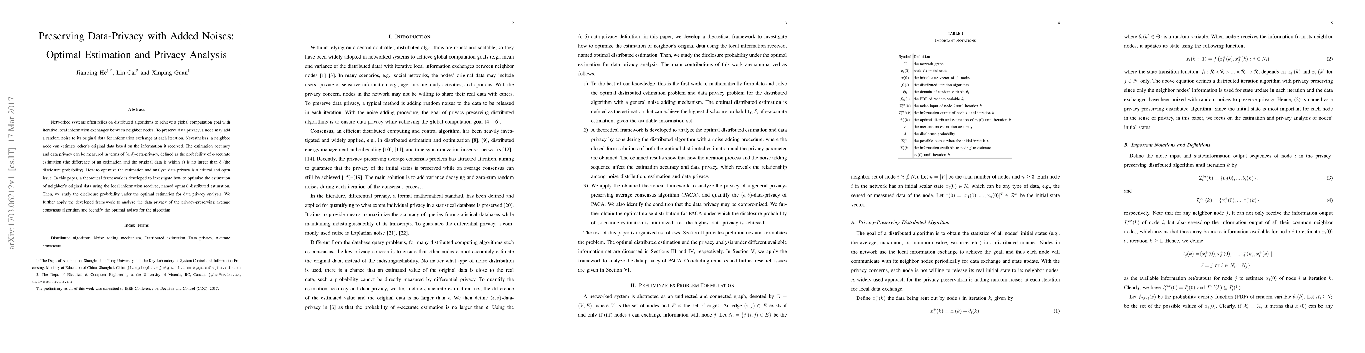 This paper develops a theoretical framework for optimal distributed estimation in networked systems, focusing on balancing estimation accuracy and data privacy. It analyzes the $(\epsilon, \delta)$-data-privacy under optimal estimation and applies the framework to the privacy-preserving average consensus algorithm to identify optimal noise levels.