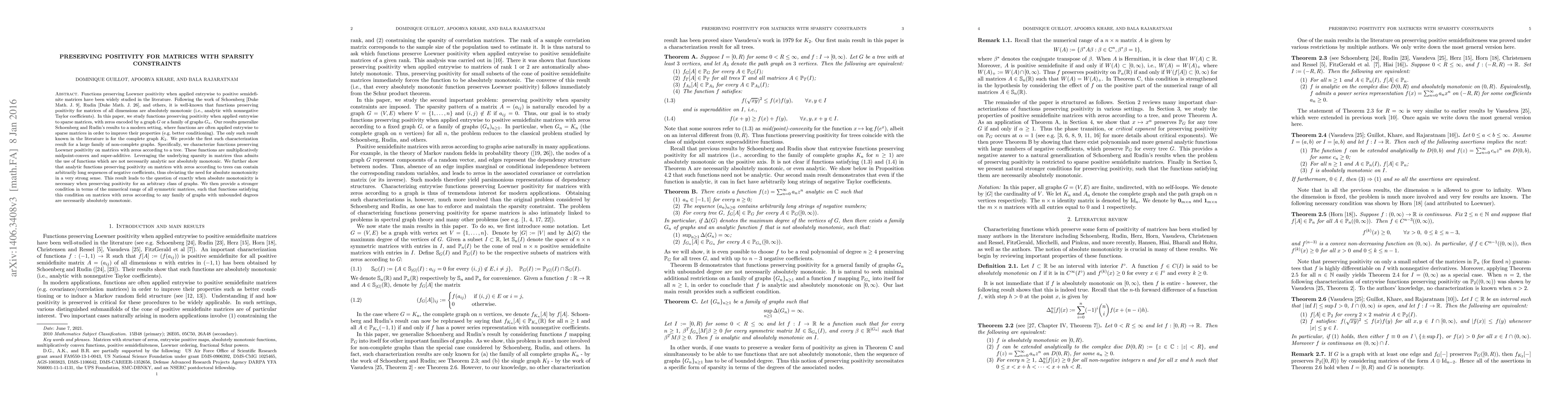 The paper presents a novel characterization of functions preserving Loewner positivity for sparse matrices with sparsity constraints, relaxing the requirement for absolute monotonicity under certain conditions.