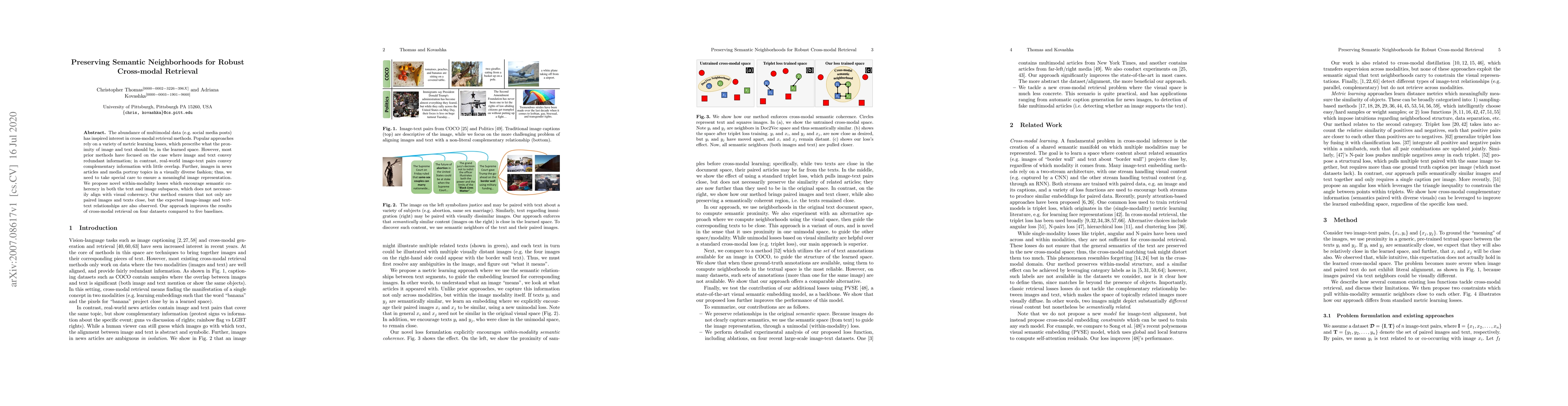 This paper proposes novel within-modality losses to enhance cross-modal retrieval by preserving semantic neighborhoods in both text and image subspaces, ensuring meaningful representations that reflect complementary information. The method outperforms five baselines on four datasets.