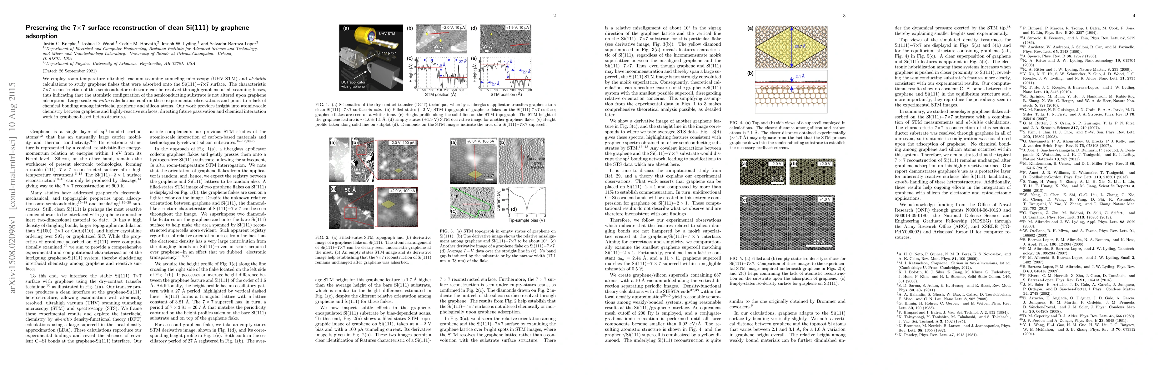 This research utilizes scanning tunneling microscopy and ab-initio calculations to demonstrate that graphene adsorption preserves the 7x7 surface reconstruction of clean Si(111) without altering the substrate's atomistic configuration, indicating no chemical bonding between graphene and silicon atoms.