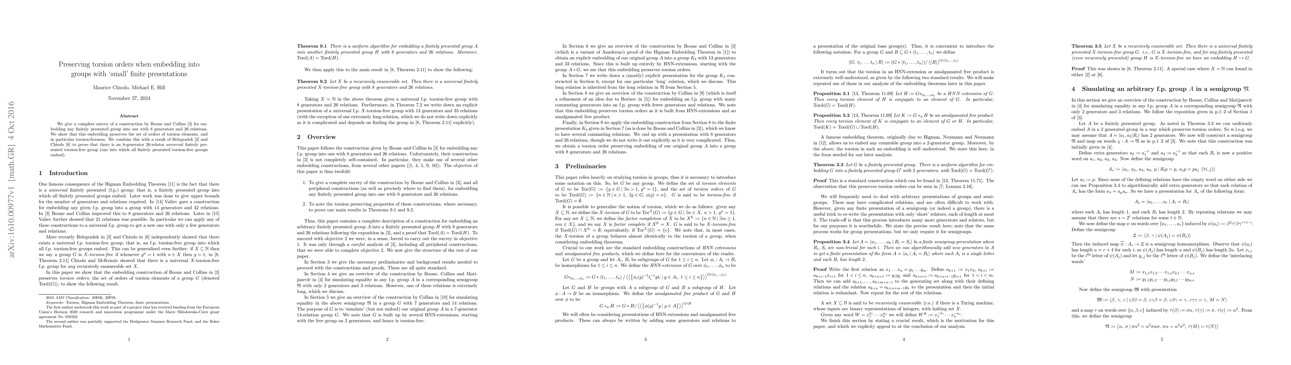 We give a complete survey of a construction by Boone and Collins for embedding any finitely presented group into one with $8$ generators and $26$ relations. We show that this embedding preserves the set of orders of torsion elements, and in particular torsion-freeness. We combine this with the independent results of Belegradek and Chiodo to prove that there is an $8$-generator $26$-relator universal finitely presented torsion-free group (one into which all finitely presented torsion-free groups embed).