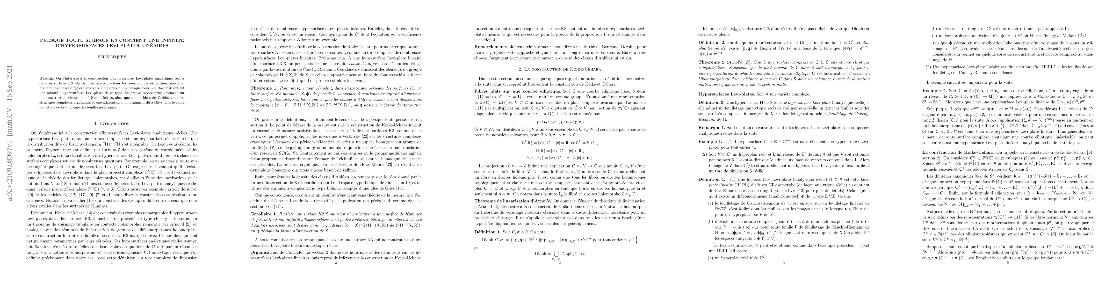 We investigate the construction of real analytic Levi-flat hypersurfaces in K3 surfaces. By taking images of real hyperplanes, one can construct such hypersurfaces in two-dimensional complex tori. We show that "almost every" K3 surfaces contains infinitely many Levi-flat hypersurfaces of this type. The proof relies mainly on a recent construction of Koike and Uehara, ideas of Verbitsky on ergodic complex structures, as well as an argument due to Ghys in the context of the study of the topology of generic leaves. -- On s'int\'eresse \`a la construction d'hypersurfaces Levi-plates analytiques r\'elles dans les surfaces K3. On peut en construire dans les tores complexes de dimension 2 en prenant des images d'hyperplans r\'eels. On montre que "presque toute" surface K3 contient une infinit\'e d'hypersurfaces Levi-plates de ce type. La preuve repose principalement sur une construction r\'ecente due \`a Koike-Uehara, ainsi que sur les id\'ees de Verbitsky sur les structures complexes ergodiques et une adaptation d'un argument d\^u \`a Ghys dans le cadre de l'\'etude de la topologie des feuilles g\'en\'eriques.