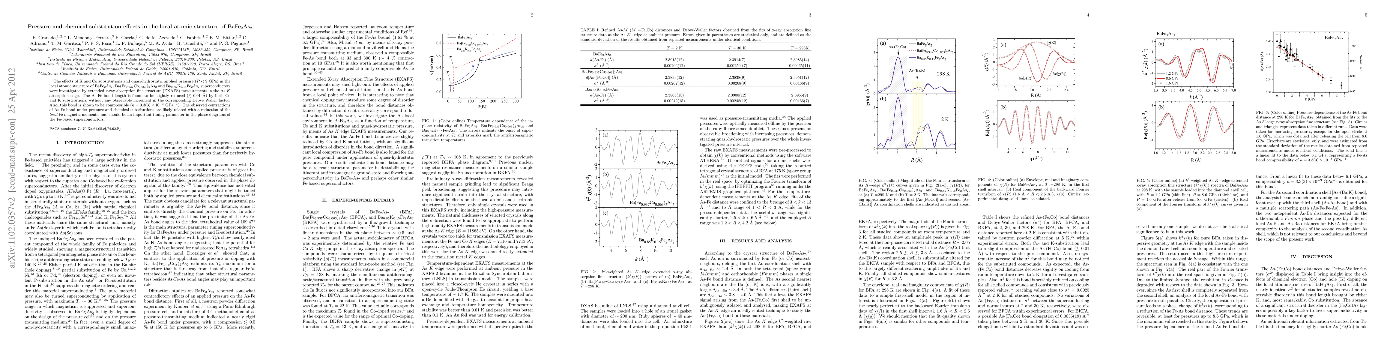 Researchers studied how pressure and chemical substitutions affect the atomic structure of BaFe2As2 superconductor, finding that it contracts slightly with Co or K substitutions and can be compressed further under pressure.