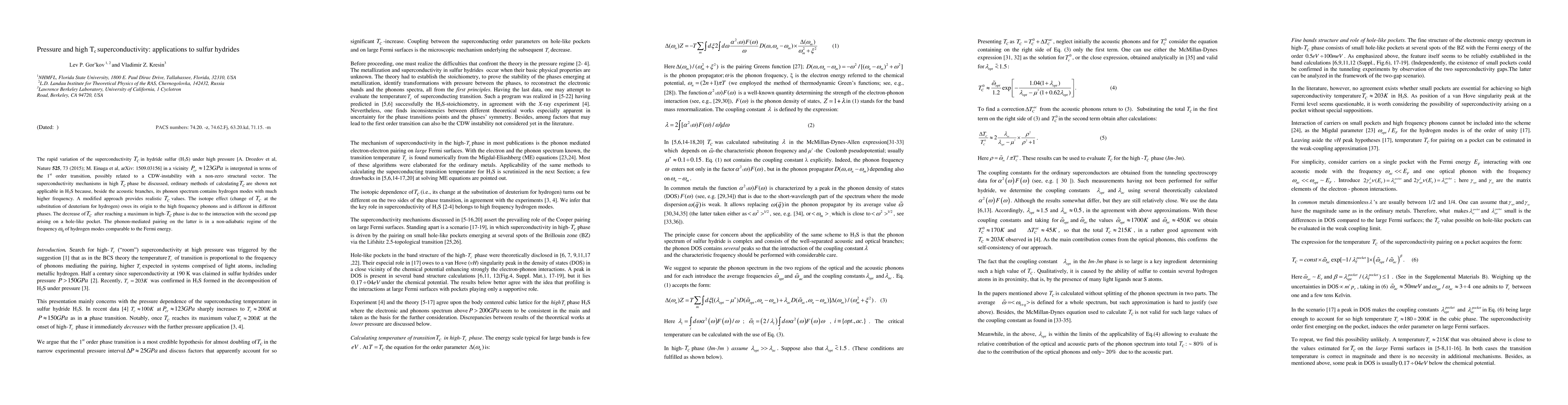 This paper investigates the high-pressure superconductivity in sulfur hydride (H3S), revealing a first-order transition near 123GPa linked to CDW-instability. A modified approach is necessary for accurate Tc calculations due to high-frequency hydrogen modes, explaining the isotope effect and the Tc decrease after a peak in high-T phases.