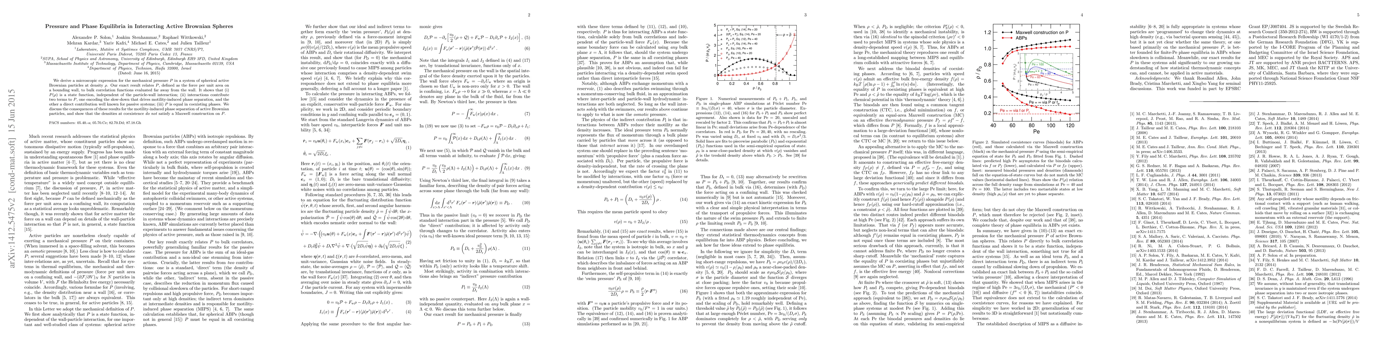 This paper derives the mechanical pressure $P$ in a system of active Brownian particles, showing it is a state function independent of particle-wall interaction. It reveals two interaction-driven contributions to $P$, one linked to motility-induced phase separation and the other similar to passive systems, with $P$ equal in coexisting phases but not satisfying Maxwell construction.