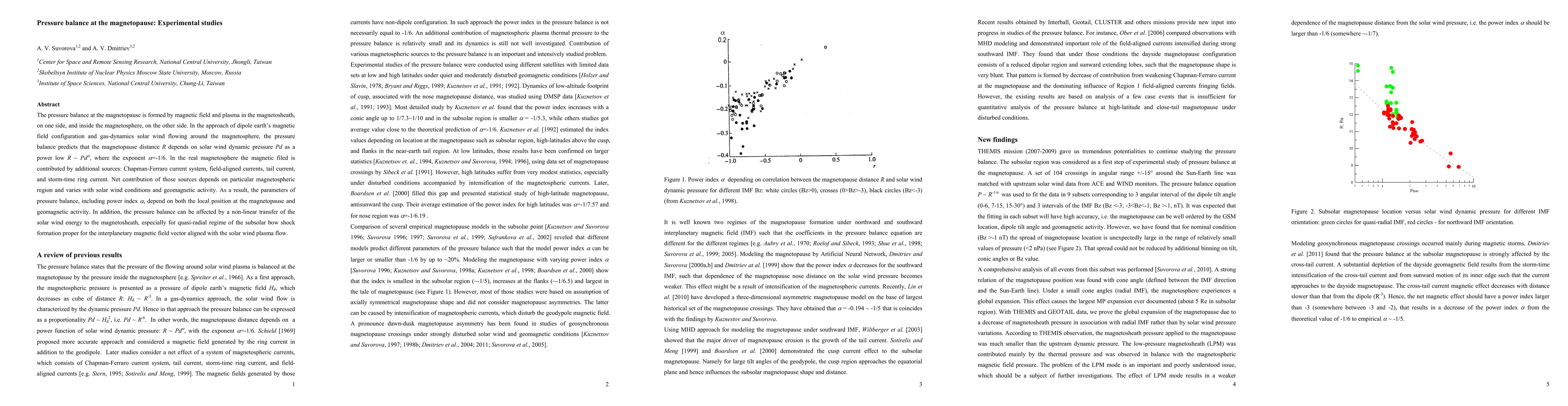 This paper explores the pressure balance at Earth's magnetopause, showing that it depends on both magnetic field and plasma pressures from the magnetosheath and magnetosphere. The study finds that the magnetopause distance varies with solar wind dynamic pressure, but the exact relationship is influenced by additional magnetic field contributions and geomagnetic activity.