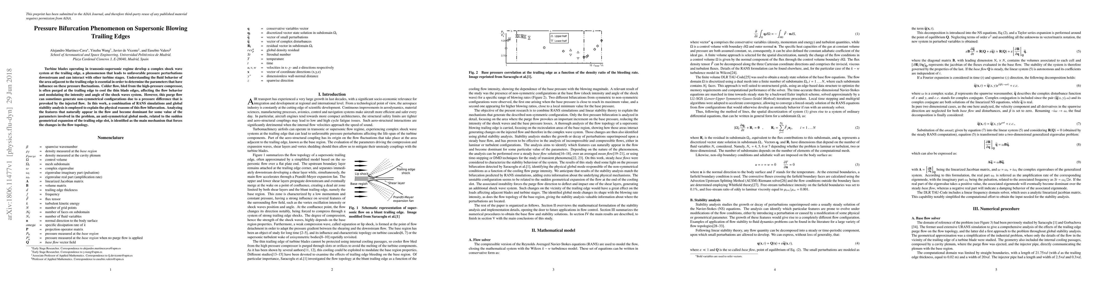 This paper explores the pressure bifurcation phenomenon on supersonic trailing edges of turbine blades, focusing on the complex shock wave system and its interaction with purged cooling flows. Through RANS simulations and stability analysis, it identifies an anti-symmetrical global mode caused by the sudden expansion of the trailing edge slot as the primary factor influencing flow topology changes.