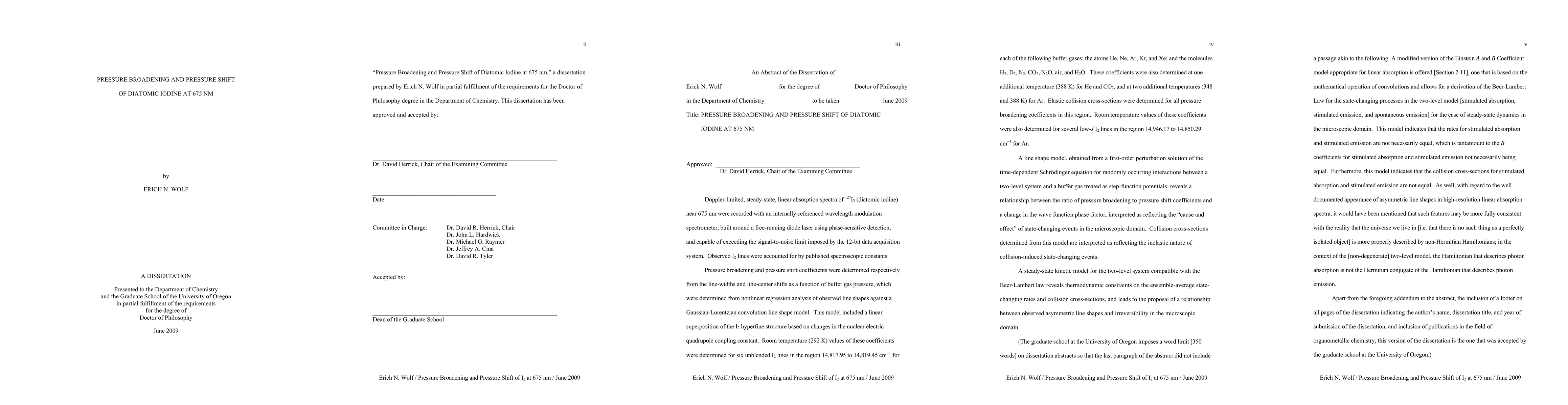 Pressure broadening and pressure shift coefficients for 127I2 (diatomic iodine) in the presence of various buffer gases were determined respectively from the line-widths and line-center shifts observed in Doppler-limited, steady-state, linear absorption spectra near 675 nm as a function of buffer gas pressure through a nonlinear regression analysis of observed line shapes against a Gaussian-Lorentzian convolution line shape model. A line shape model, obtained from a first-order perturbation solution of the time-dependent Schrodinger equation for randomly occurring interactions between a two-level system and a buffer gas treated as step-function potentials, reveals a relationship between the ratio of pressure broadening to pressure shift coefficients and a change in the wave function phase-factor, interpreted as reflecting the "cause and effect" of state-changing events in the microscopic domain. Collision cross-sections determined from this model are interpreted as reflecting the inelastic nature of collision-induced state-changing events. A steady-state kinetic model for the two-level system compatible with the Beer-Lambert law reveals thermodynamic constraints on the ensemble-average state-changing rates and collision cross-sections, and leads to the proposal of a relationship between observed asymmetric line shapes and irreversibility in the microscopic domain, and suggests that such features may be more fully consistent with the use of non-Hermitian Hamiltonians for describing the state-changing process; in the context of the [non-degenerate] two-level model, the Hamiltonian that describes photon absorption is not the Hermitian conjugate of the Hamiltonian that describes photon emission.