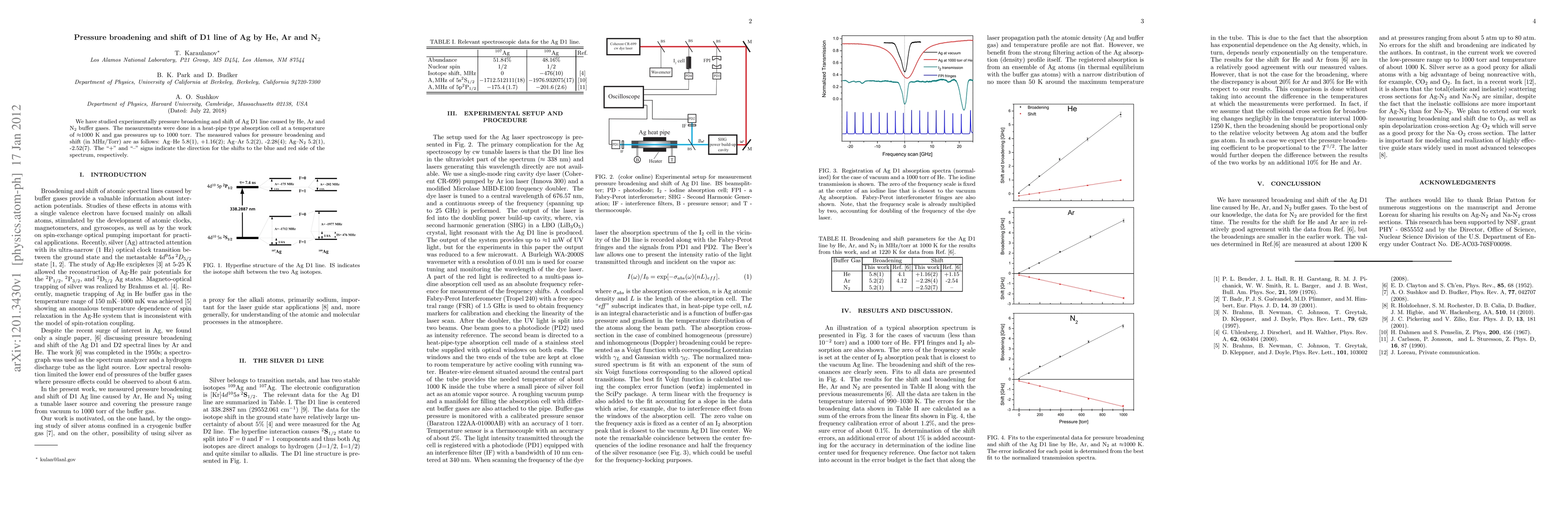 We have studied experimentally pressure broadening and shift of Ag D1 line caused by He, Ar and N2 buffer gases. The measurements were done in a heat-pipe type absorption cell at a temperature of ~1000 K and gas pressures up to 1000 torr. The measured values for pressure broadening and shift (in MHz/Torr) are as follows: Ag-He 5.8(1), +1.16(2); Ag-Ar 5.2(2), -2.28(4); Ag-N2 5.2(1), -2.52(7). The "+" and "-" signs indicate the direction for the shifts to the blue and red side of the spectrum, respectively.