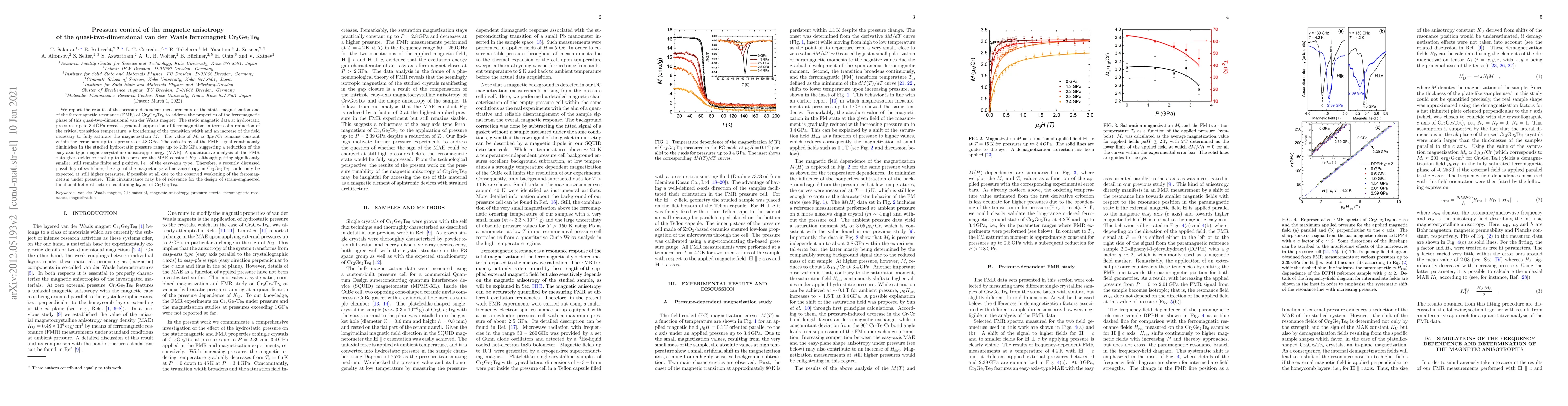 We report the results of the pressure-dependent measurements of the static magnetization and of the ferromagnetic resonance (FMR) of Cr$_2$Ge$_2$Te$_6$ to address the properties of the ferromagnetic phase of this quasi-two-dimensional van der Waals magnet. The static magnetic data at hydrostatic pressures up to 3.4 GPa reveal a gradual suppression of ferromagnetism in terms of a reduction of the critical transition temperature, a broadening of the transition width and an increase of the field necessary to fully saturate the magnetization $M_{\rm s}$. The value of $M_{\rm s} \simeq 3\mu_{\rm B}$/Cr remains constant within the error bars up to a pressure of 2.8 GPa. The anisotropy of the FMR signal continuously diminishes in the studied hydrostatic pressure range up to 2.39 GPa suggesting a reduction of the easy-axis type magnetocrystalline anisotropy energy (MAE). A quantitative analysis of the FMR data gives evidence that up to this pressure the MAE constant $K_{\rm U}$, although getting significantly smaller, still remains finite and positive, i.e. of the easy-axis type. Therefore, a recently discussed possibility of switching the sign of the magnetocrystalline anisotropy in Cr$_2$Ge$_2$Te$_6$ could only be expected at still higher pressures, if possible at all due to the observed weakening of the ferromagnetism under pressure. This circumstance may be of relevance for the design of strain-engineered functional heterostructures containing layers of Cr$_2$Ge$_2$Te$_6$.