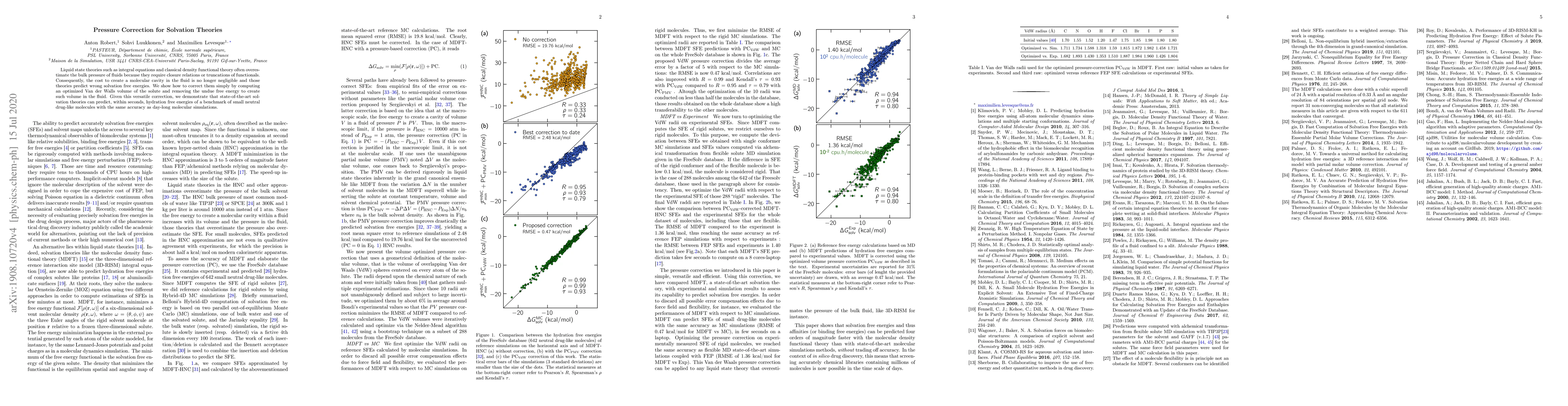 This paper proposes a method to correct the bulk pressure overestimation in liquid state solvation theories by optimizing the Van der Waals volume of solutes, thereby accurately predicting solvation free energies. The approach enables state-of-the-art solvation theories to match the accuracy of long molecular simulations in a fraction of the time.