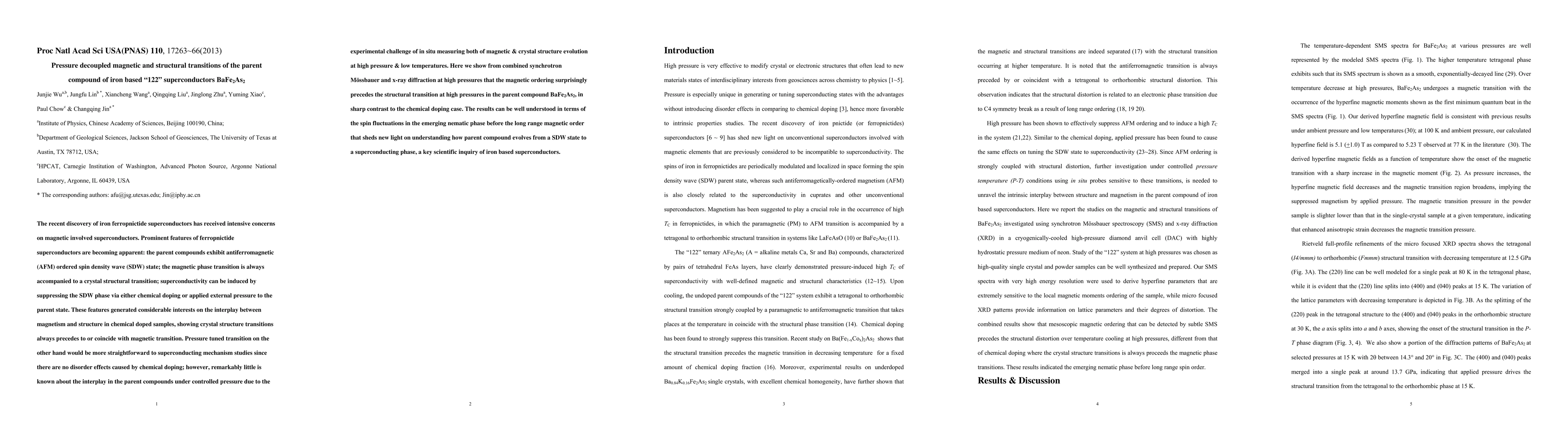 This study reveals that in the parent compound BaFe2As2, magnetic ordering occurs before structural transitions under high pressure, contrasting with chemical doping scenarios. This finding, elucidated through synchrotron Mössbauer and x-ray diffraction, provides insights into the evolution from antiferromagnetic spin density wave to superconductivity.