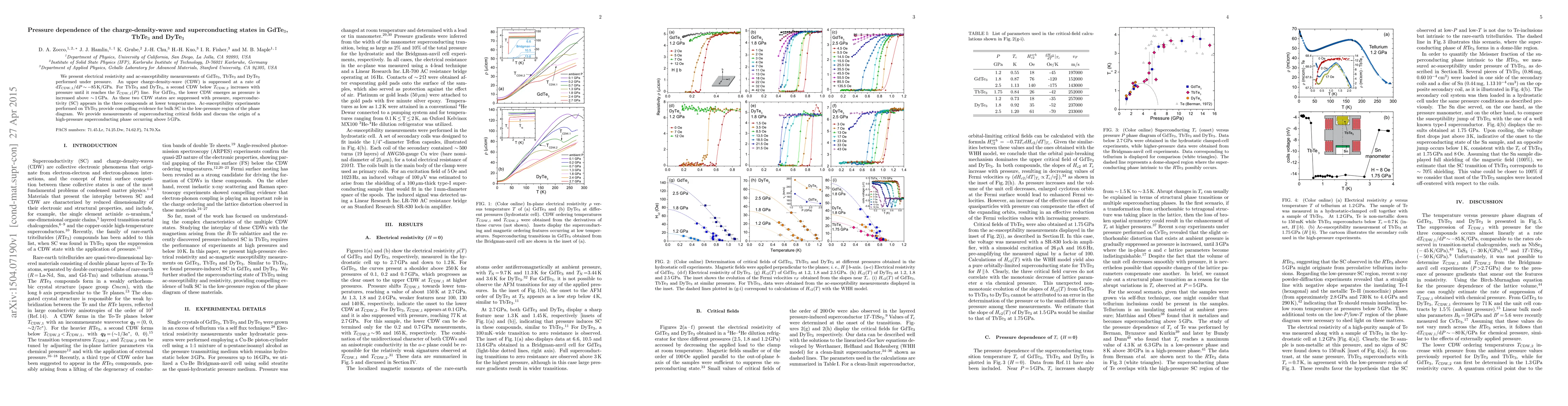 The study utilizes electrical resistivity and ac-susceptibility measurements under pressure for GdTe$_3$, TbTe$_3$, and DyTe$_3$ to investigate the pressure dependence of charge-density-wave (CDW) and superconducting states.