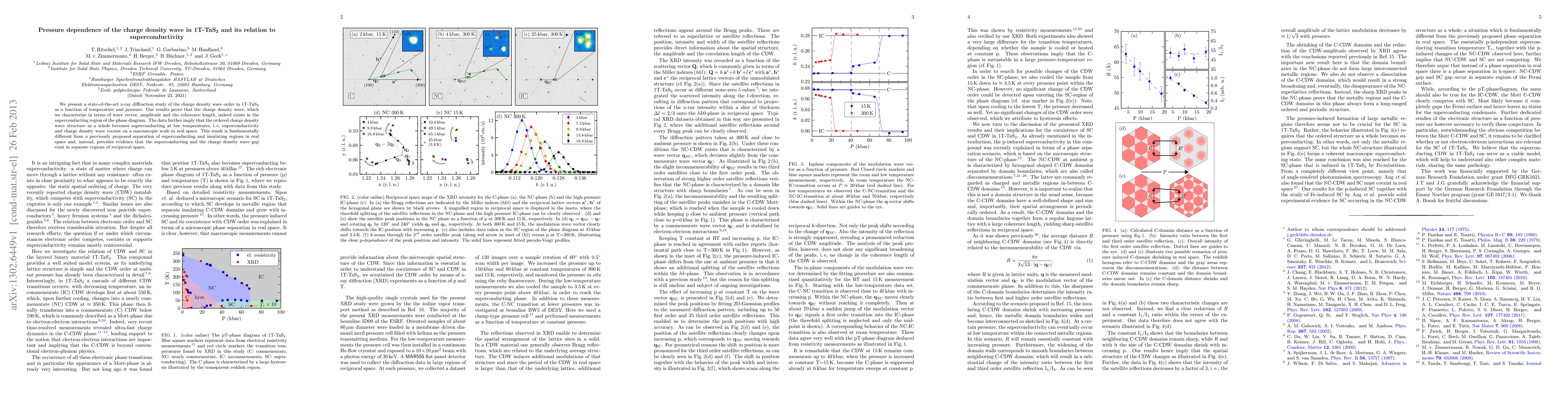 This work distinguishes itself by demonstrating that superconductivity and CDW exist in separate regions of reciprocal space, contradicting earlier proposals of separate regions in real space, and providing a comprehensive analysis of the pressure dependence of CDW in 1T-TaS2.