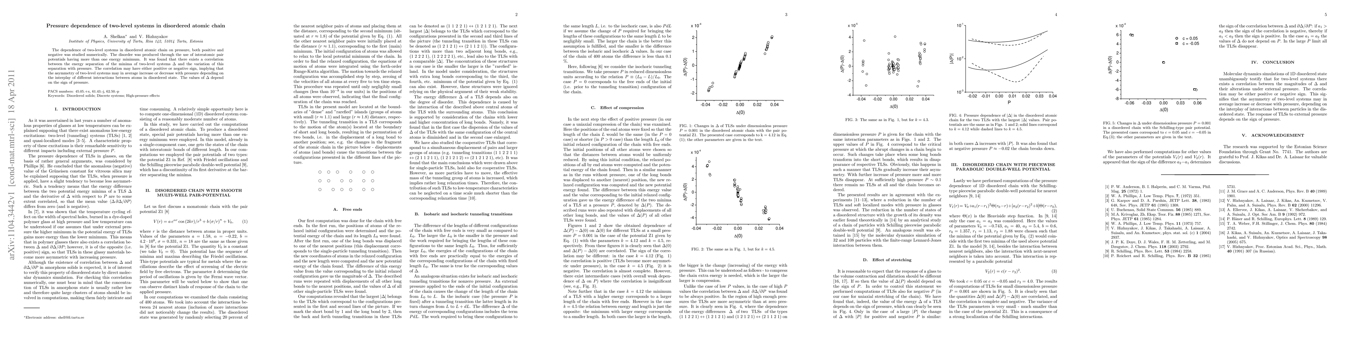 Researchers studied how pressure affects two-level systems in disordered atomic chains, finding a correlation between energy separation and pressure variation, which may lead to increased or decreased asymmetry depending on the interaction between atoms.