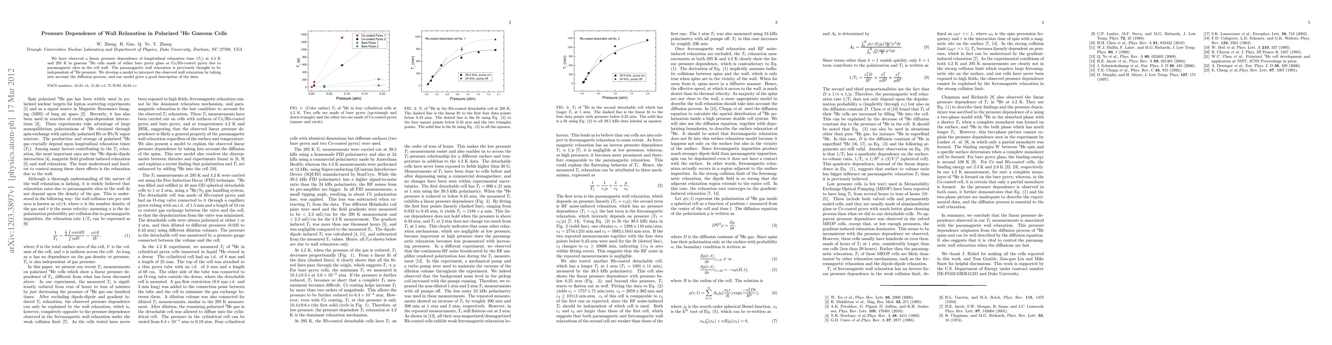 We have observed a linear pressure dependence of longitudinal relaxation time ($T_1$) at 4.2 K and 295 K in gaseous $^3$He cells made of either bare pyrex glass or Cs/Rb-coated pyrex due to paramagnetic sites in the cell wall. The paramagnetic wall relaxation is previously thought to be independent of $^3$He pressure. We develop a model to interpret the observed wall relaxation by taking into account the diffusion process, and our model gives a good description of the data.