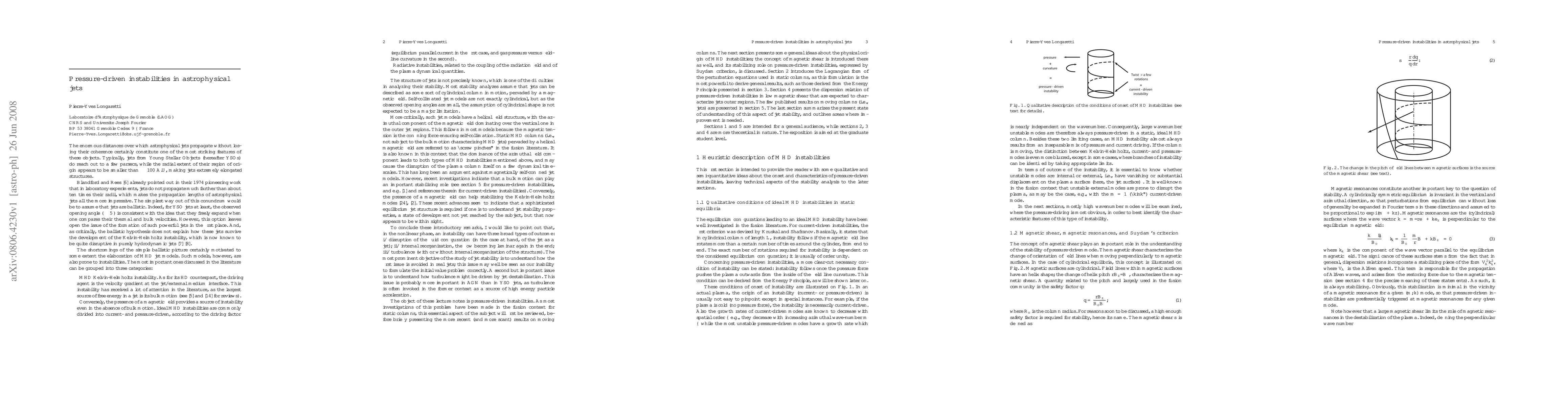This paper reviews the current understanding of pressure-driven instabilities in astrophysical jets, emphasizing their potential to disrupt the self-collimation due to hoop-stress. It discusses magnetic resonances, shear, and the stabilizing role of axial jet velocity, highlighting recent advances in identifying nonlinear stabilization mechanisms.