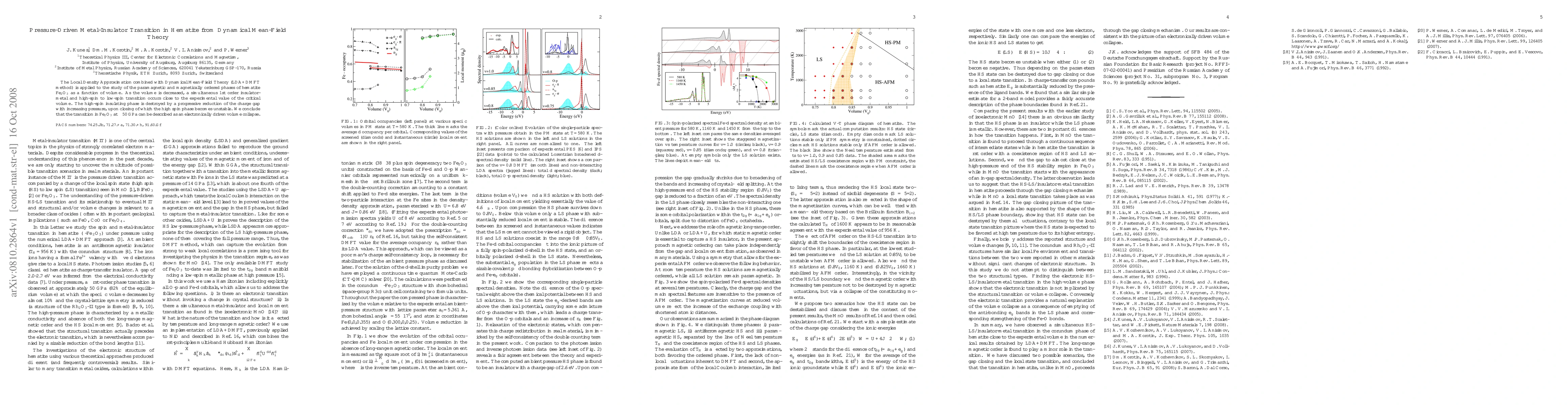 The LDA+DMFT method reveals that hematite undergoes a pressure-driven metal-insulator transition from a high-spin insulating to a low-spin metallic phase near 50 GPa. The transition is characterized by a volume collapse driven by electronic changes.