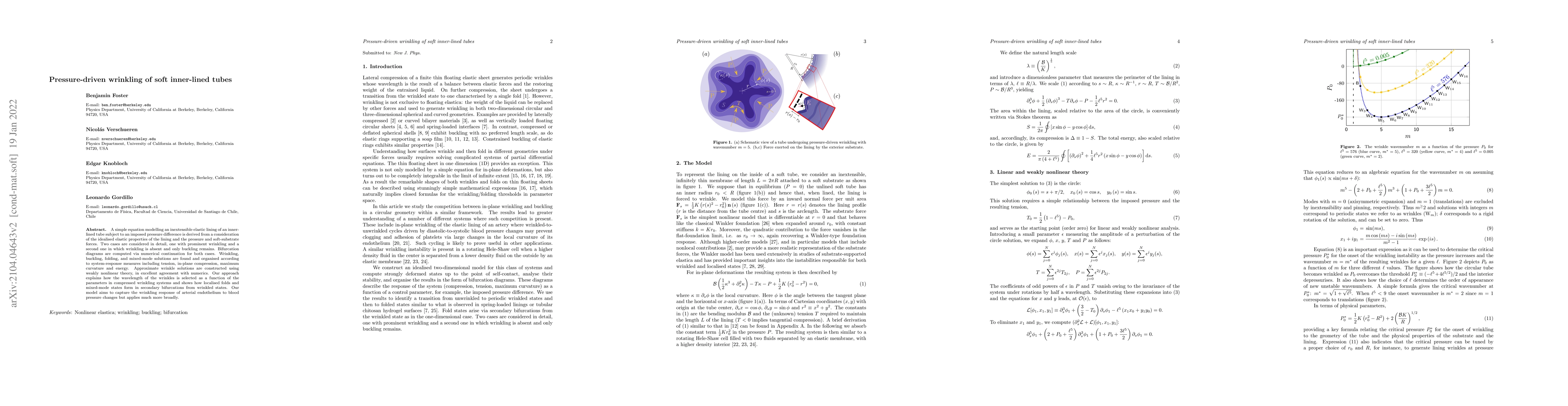 This paper models the pressure-induced wrinkling of an inextensible elastic lining within a tube, deriving an equation to capture the wrinkling response of arterial endothelium. The study uses numerical continuation and weakly nonlinear theory to explain the selection of wrinkle wavelength and amplitude, and the formation of localized folds and mixed-mode states under varying pressure conditions.