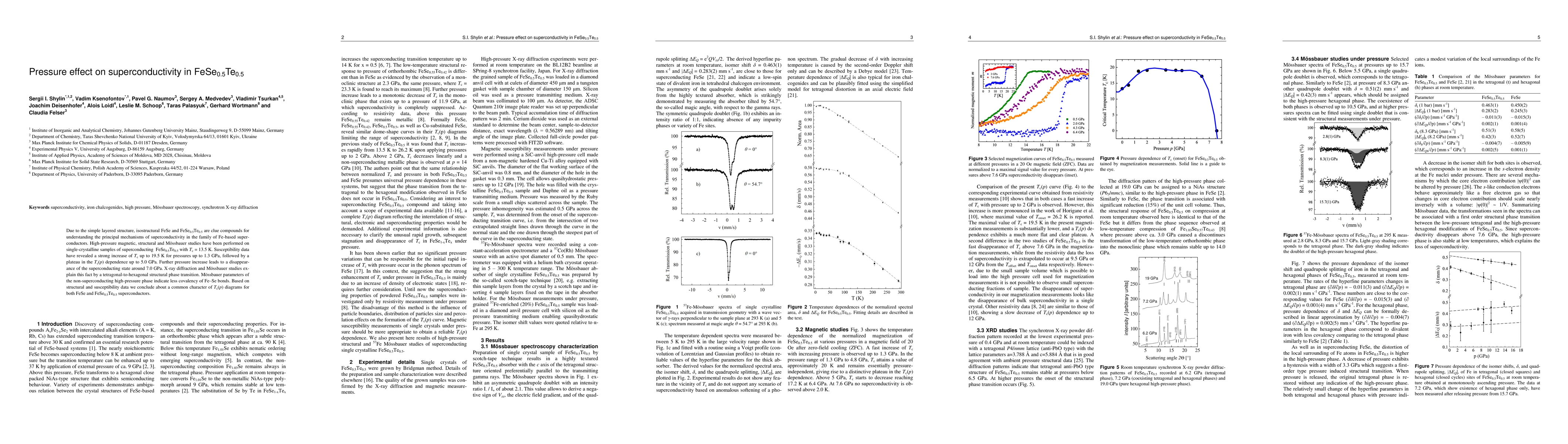 High-pressure studies on FeSe0.5Te0.5 revealed a strong increase in superconducting temperature up to 19.5 K, followed by a plateau until 7.0 GPa where the state disappears due to a structural phase transition.