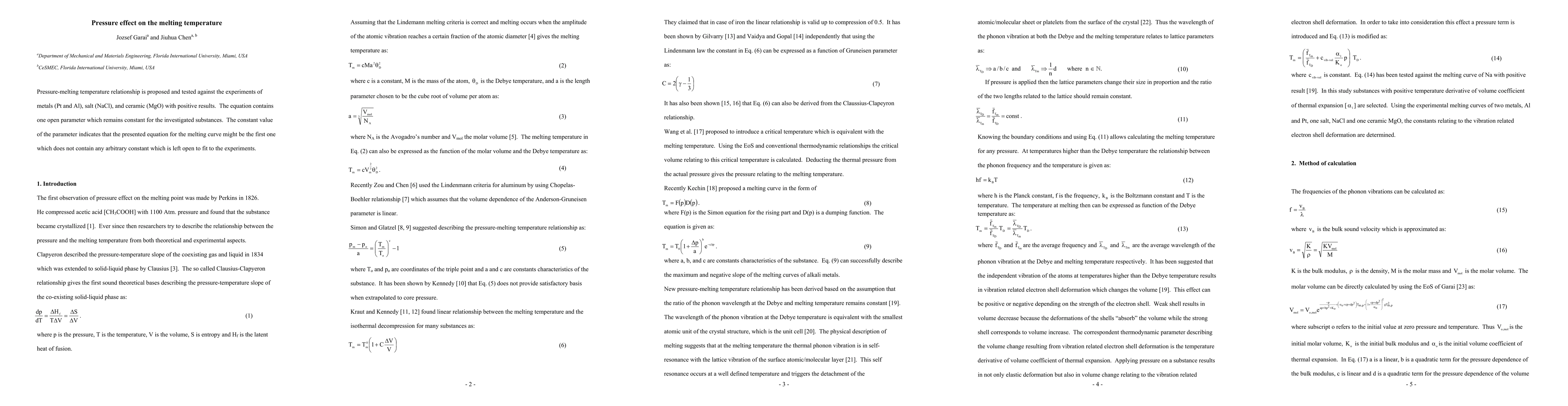 The research proposes a pressure-melting temperature equation, tested on metals, salt, and ceramics with positive results. The equation features one constant parameter across all substances, suggesting it might be the first accurate, universal melting curve model without arbitrary fitting.