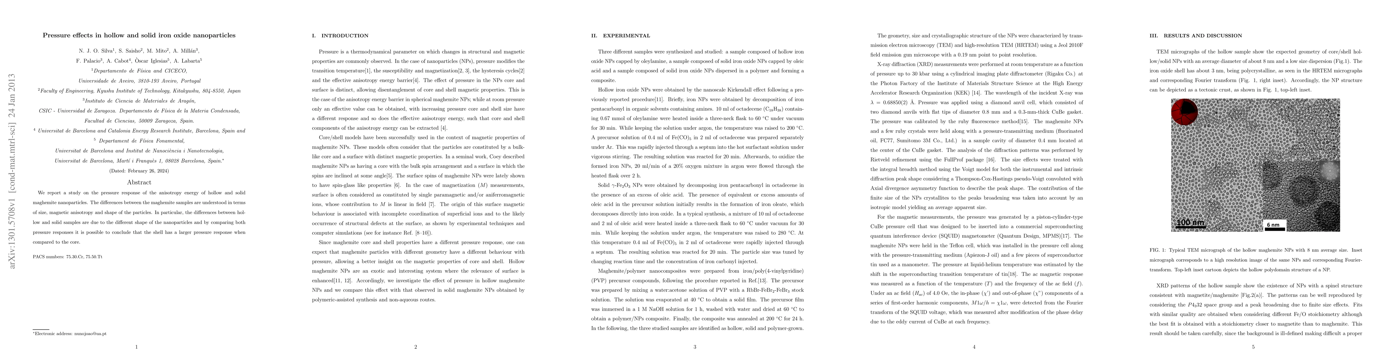 This study investigates how pressure affects the anisotropy energy of hollow versus solid maghemite nanoparticles, revealing that the shell of hollow nanoparticles exhibits a greater pressure response compared to the core, attributed to differences in particle shape and size.