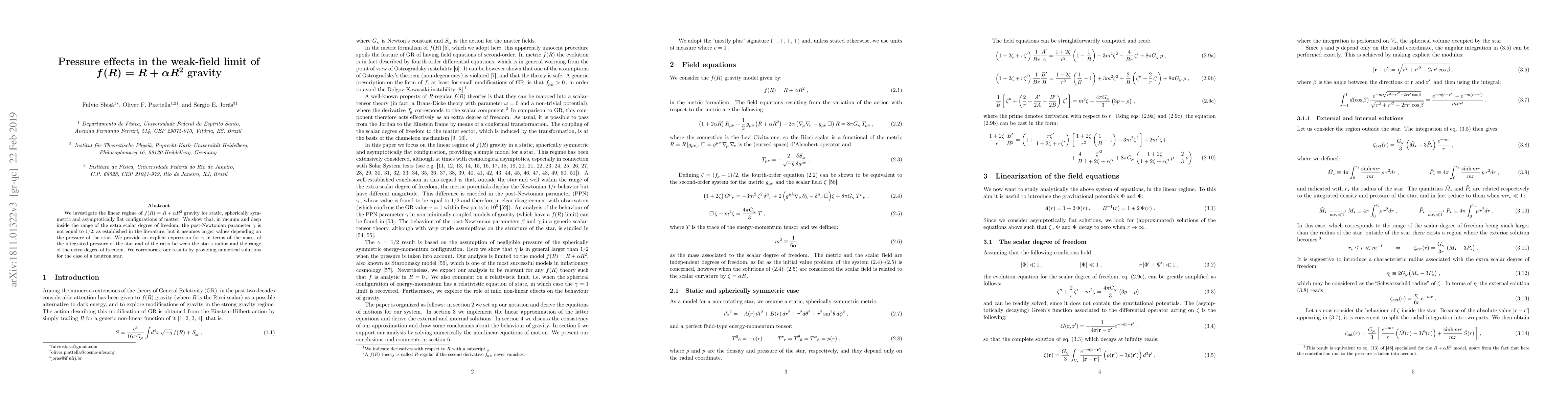 This research examines f(R) = R + alpha R^2 gravity in weak fields, revealing that in vacuum and within a star's core, the parameter gamma deviates from the usual 1/2 value. It depends on the star's pressure, mass, integrated pressure, and radius relative to the extra degree of freedom's range. Numerical solutions for neutron stars support these findings.