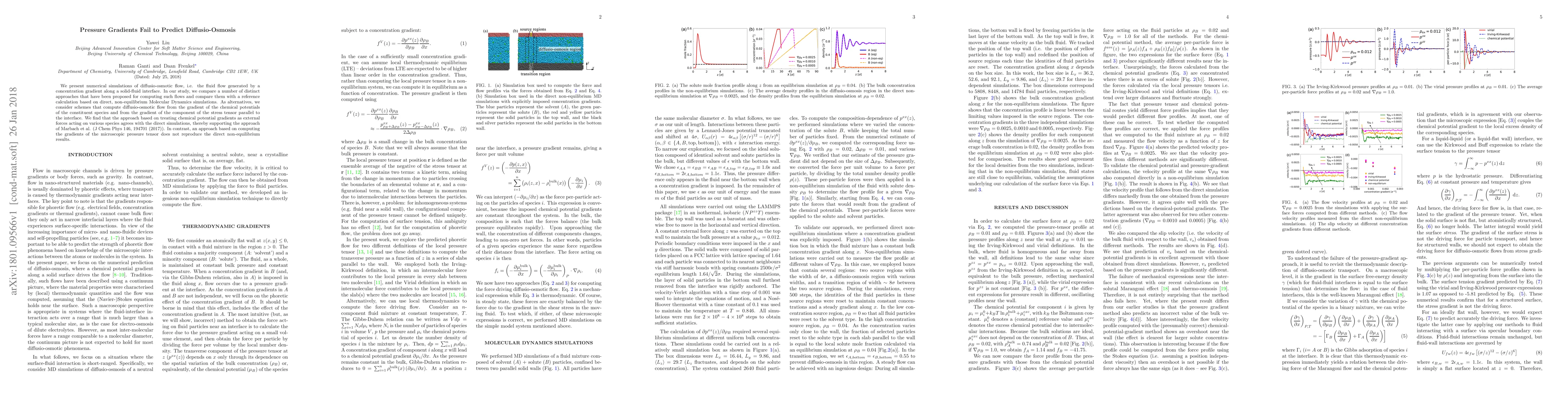 This paper investigates numerical simulations of diffusio-osmotic flow, finding that methods based on chemical potential gradients align with direct simulations, while pressure gradient-based approaches fail to predict the flow accurately.