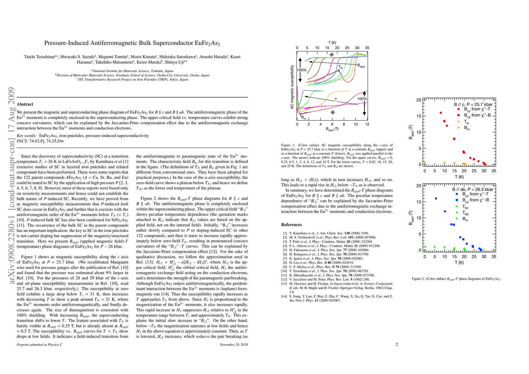 The study investigates the magnetic and superconducting phase diagram of EuFe2As2 for B ‖ c and B ‖ ab using ac magnetic susceptibility measurements at approximately 26 kbar pressure.