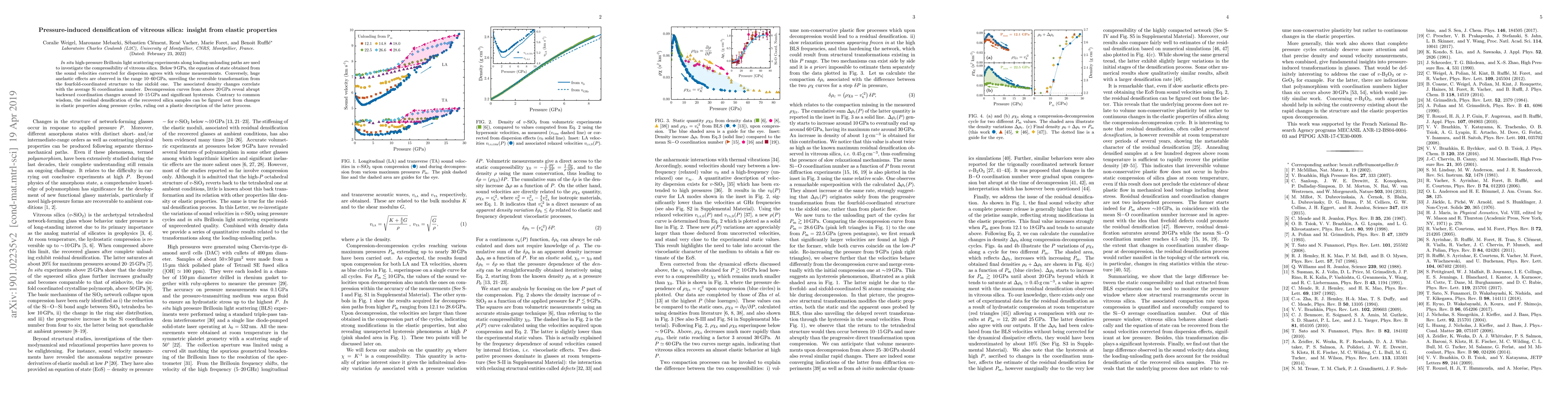 This study uses high-pressure Brillouin light scattering to investigate the compressibility of vitreous silica, revealing a reversible structural transformation from fourfold to sixfold coordination at high pressures. The research finds significant hysteresis and residual densification in silica samples after pressure cycles, challenging conventional understanding.