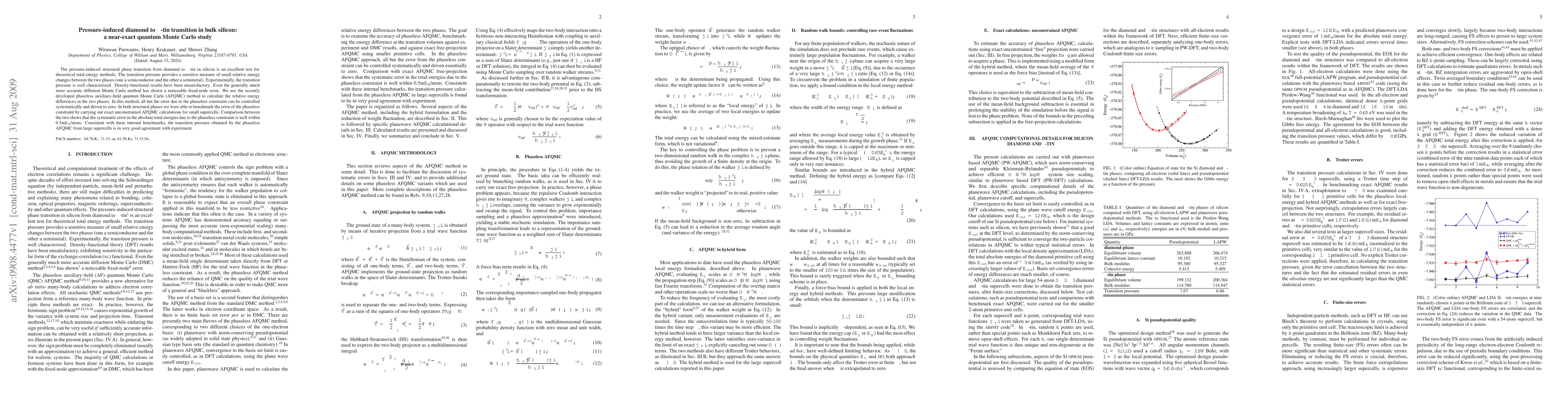 This study uses the phaseless auxiliary-field quantum Monte Carlo method to accurately calculate the pressure-induced transition from diamond to beta-tin in silicon, achieving results that closely match experimental data and surpassing previous density-functional and Monte Carlo methods. The method's systematic error is controlled and shown to be minimal, validating its accuracy.