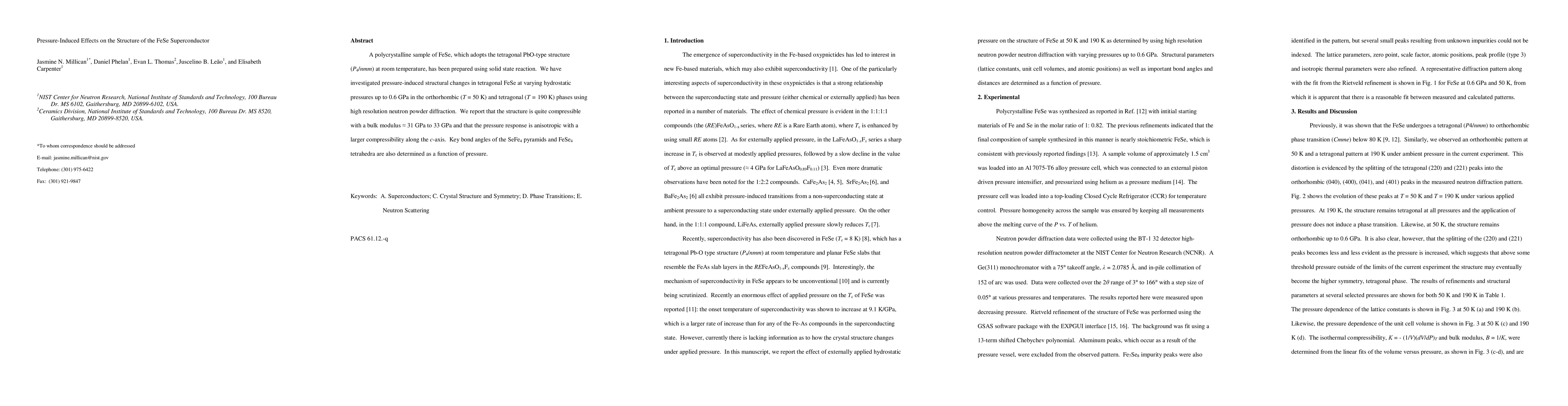 Researchers studied the effects of pressure on the FeSe superconductor's structure, finding it to be highly compressible with a bulk modulus around 31-33 GPa and anisotropic pressure response.