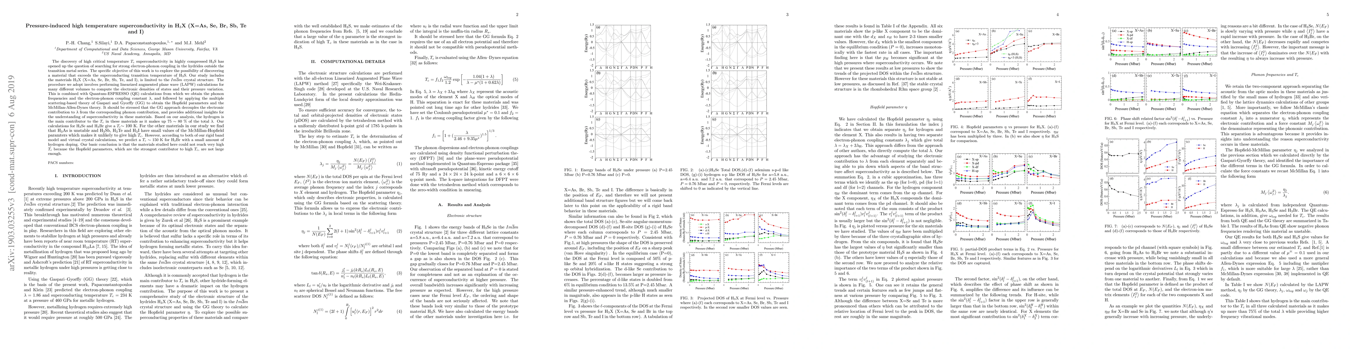 Researchers discovered high-temperature superconductivity in H3X materials with X=As, Se, Br, Sb, Te, and I under high pressure, with Tc values up to 150K for some compounds.