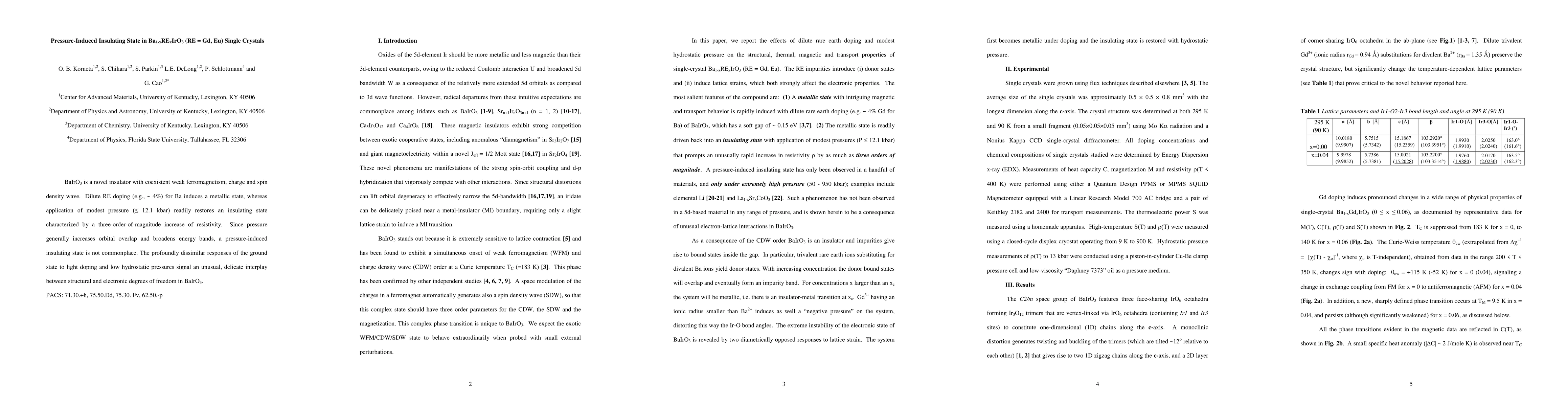 BaIrO3 is a novel insulator with coexistent weak ferromagnetism, charge and spin density wave. Dilute RE doping for Ba induces a metallic state, whereas application of modest pressure readily restores an insulating state characterized by a three-order-of-magnitude increase of resistivity. Since pressure generally increases orbital overlap and broadens energy bands, a pressure-induced insulating state is not commonplace. The profoundly dissimilar responses of the ground state to light doping and low hydrostatic pressures signal an unusual, delicate interplay between structural and electronic degrees of freedom in BaIrO3.