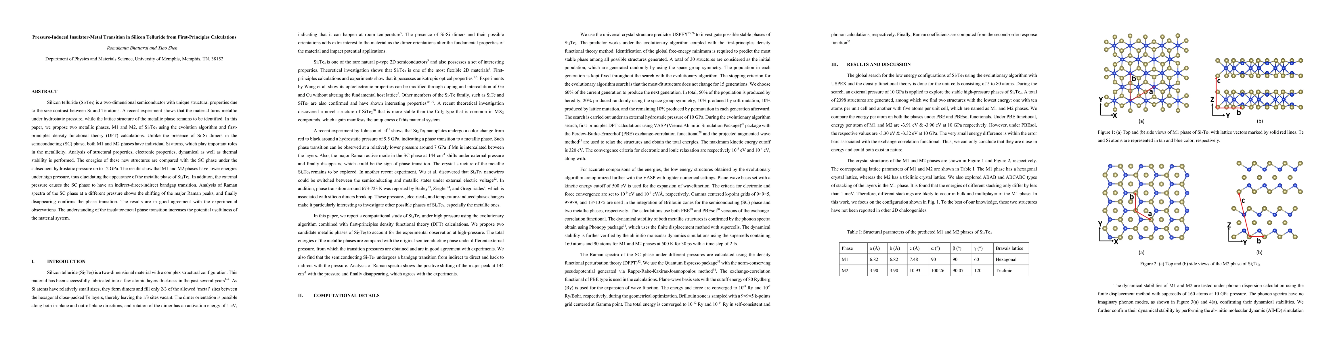 This paper proposes two metallic phases, M1 and M2, of silicon telluride (Si2Te3) under high pressure using first-principles calculations. The metallic phases feature individual Si atoms, contrasting with the semiconducting phase's Si-Si dimers, and exhibit lower energy compared to the semiconducting phase, explaining the pressure-induced insulator-metal transition.