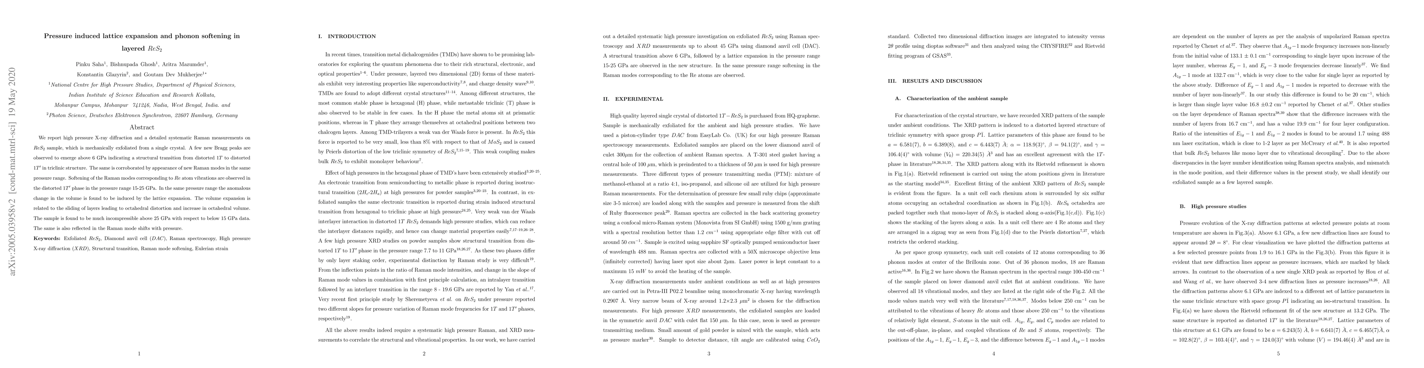 We report high pressure X-ray diffraction and a detailed systematic Raman measurements on $ReS_2$ sample, which is mechanically exfoliated from a single crystal. A few new Bragg peaks are observed to emerge above 6 GPa indicating a structural transition from distorted $1T$ to distorted $1T$$^{\prime}$ in triclinic structure. The same is corroborated by appearance of new Raman modes in the same pressure range. Softening of the Raman modes corresponding to $Re$ atom vibrations are observed in the distorted $1T$$^{\prime}$ phase in the pressure range 15-25 GPa. In the same pressure range the anomalous change in the volume is found to be induced by the lattice expansion. The volume expansion is related to the sliding of layers leading to octahedral distortion and increase in octahedral volume. The sample is found to be much incompressible above 25 GPa with respect to below 15 GPa data. The same is also reflected in the Raman mode shifts with pressure.