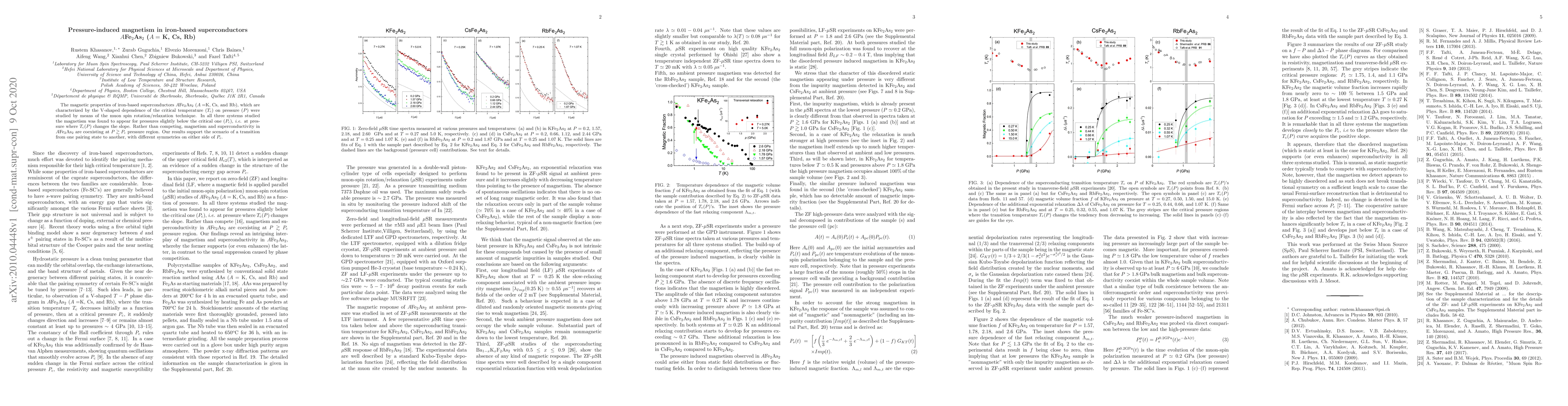 This study reveals that pressure-induced magnetism in $A$Fe$_2$As$_2$ ($A=$K, Cs, Rb) iron-based superconductors emerges just below critical pressure, where $T_{\rm c}$ changes slope, indicating coexistence of magnetism and superconductivity at higher pressures. This suggests a transition from one superconducting pairing state to another across the critical pressure.