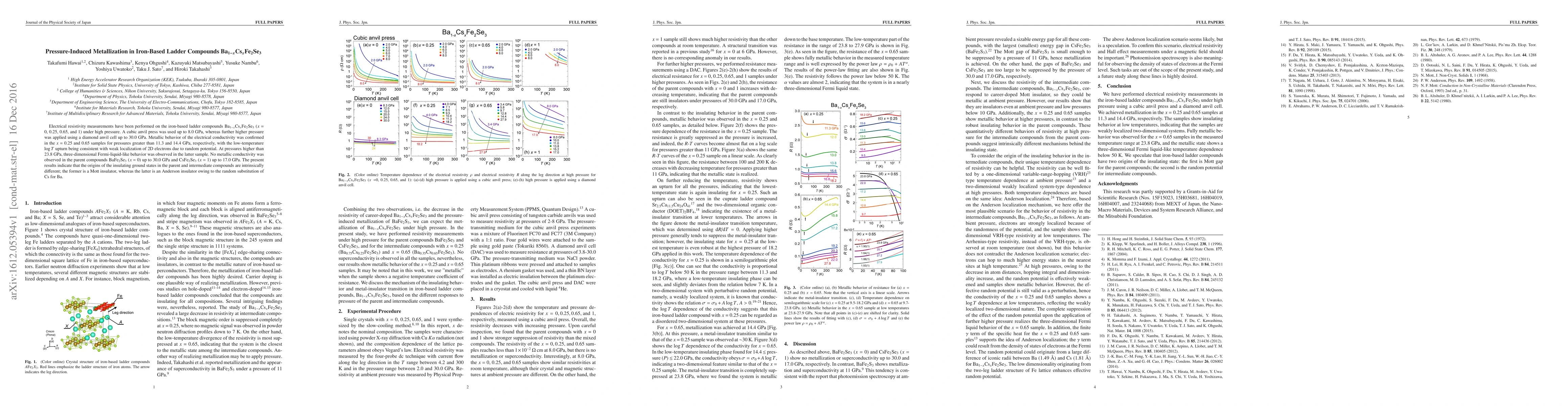 This study investigates the pressure-induced metallization in iron-based ladder compounds Ba$_{1-x}$Cs$_x$Fe$_2$Se$_3$ under high pressure, revealing that $x$ = 0.25 and 0.65 samples exhibit metallic behavior above 11.3 and 14.4 GPa, respectively, while parent compounds remain insulating up to 30.0 GPa.