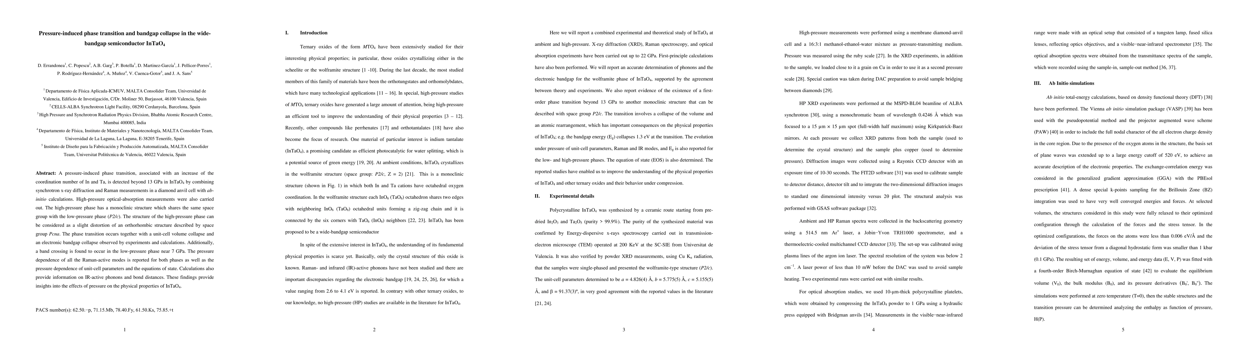 Researchers discovered a pressure-induced phase transition in InTaO4 that leads to a monoclinic structure and electronic bandgap collapse at 13 GPa. The study uses synchrotron x-ray diffraction, Raman measurements, and ab-initio calculations to understand the effects of pressure on InTaO4's physical properties.
