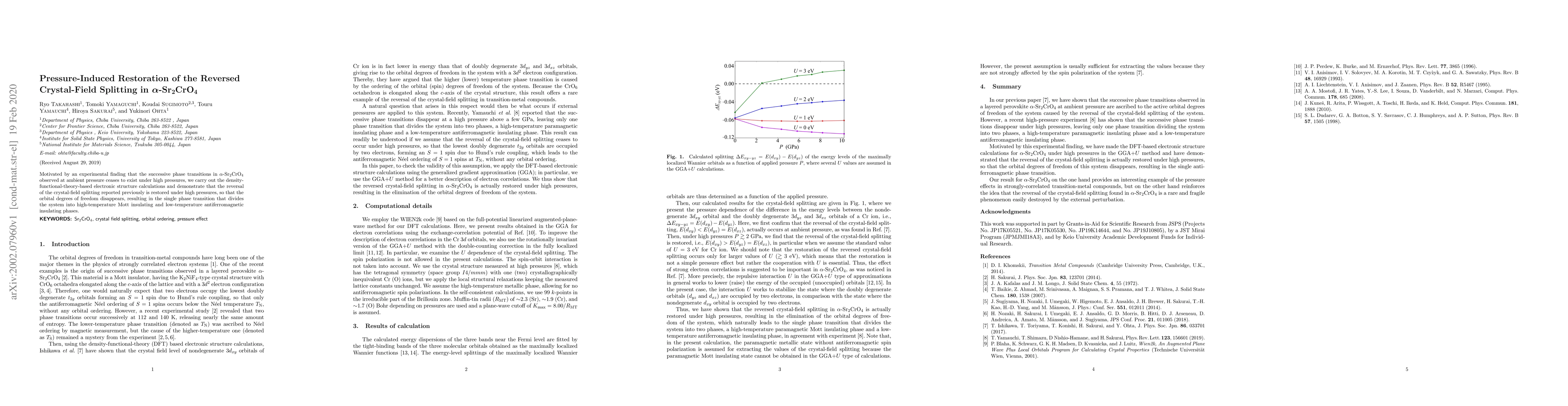 Motivated by an experimental finding that the successive phase transitions in $\alpha$-Sr$_2$CrO$_4$ observed at ambient pressure ceases to exist under high pressures, we carry out the density-functional-theory-based electronic structure calculations and demonstrate that the reversal of the crystal-field splitting reported previously is restored under high pressures, so that the orbital degrees of freedom disappears, resulting in the single phase transition that divides the system into high-temperature Mott insulating and low-temperature antiferromagnetic insulating phases.