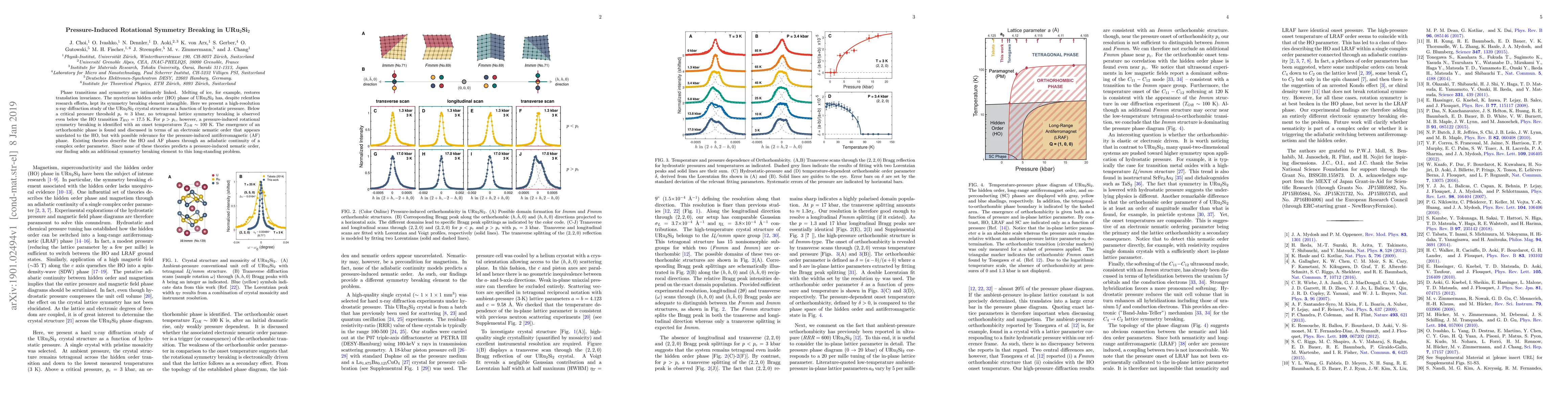 This study reveals a pressure-induced rotational symmetry breaking in URu$_2$Si$_2$, identifying an orthorhombic phase onset above a critical pressure. This nematic order emerges independently of the hidden order phase, introducing a new complexity to the material's symmetry breaking mechanisms.