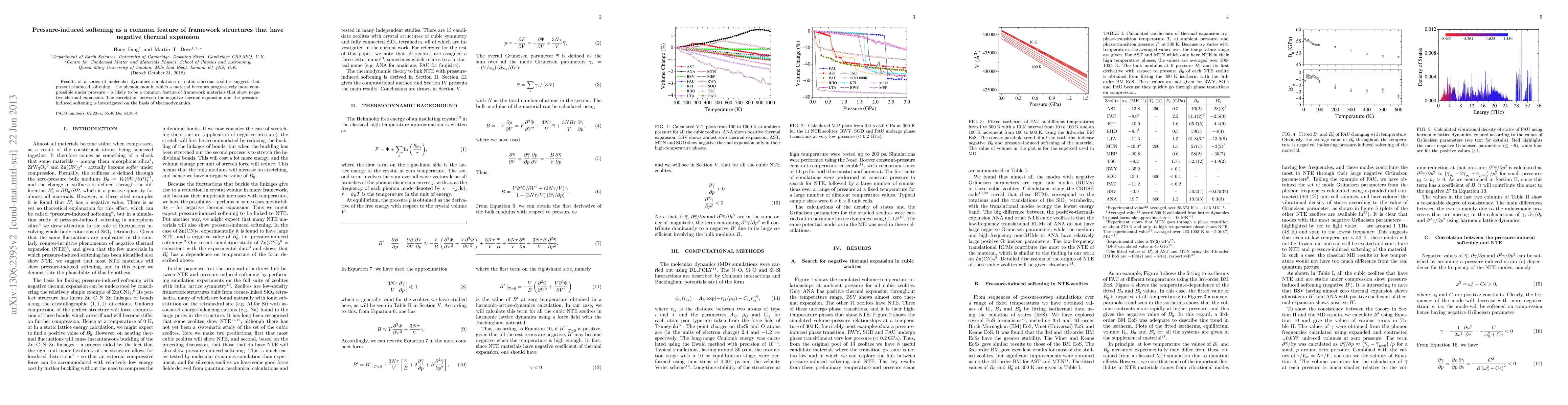 This study uses molecular dynamics simulations to show that pressure-induced softening is likely common in framework materials with negative thermal expansion. The research establishes a thermodynamic correlation between these two phenomena in cubic siliceous zeolites.