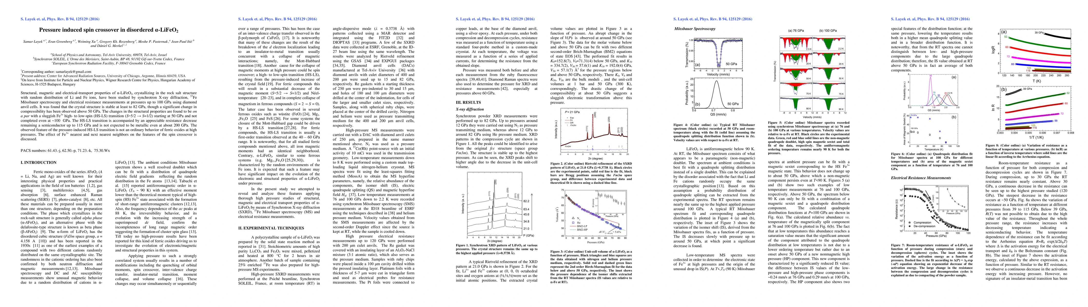 Researchers investigated pressure-induced spin crossover in disordered {eta}-LiFeO2, finding a transition from high- to low-spin state at 50 GPa that persists up to 115 GPa, with significant implications for our understanding of ferric oxide behavior under high pressure.