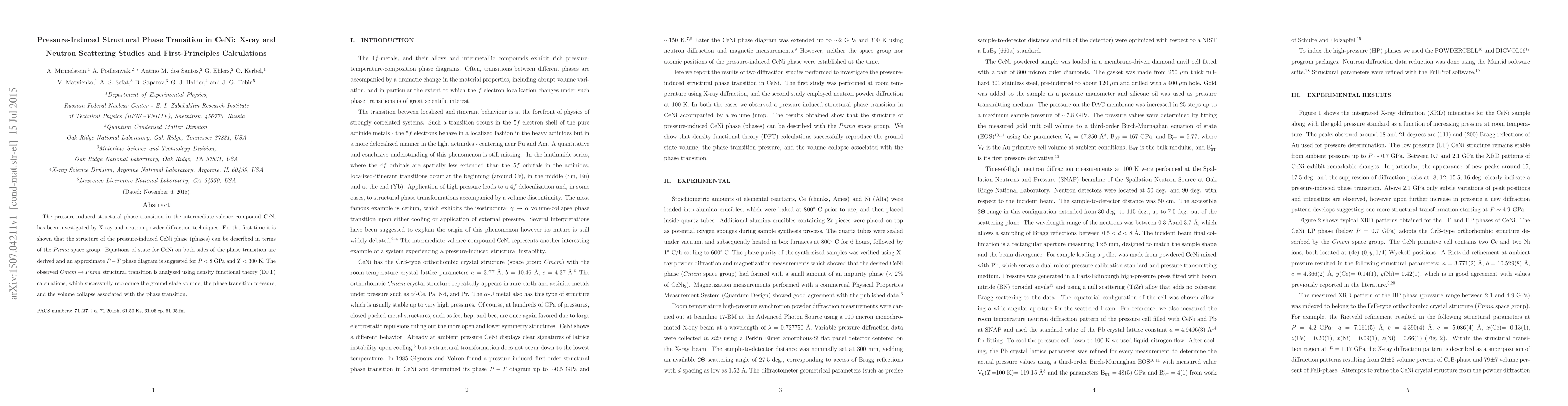 The paper investigates the pressure-induced structural phase transition in CeNi using X-ray and neutron diffraction, revealing a Pnma space group for the high-pressure phase and suggesting a P-T phase diagram. Density functional theory (DFT) calculations confirm the transition and match experimental observations.
