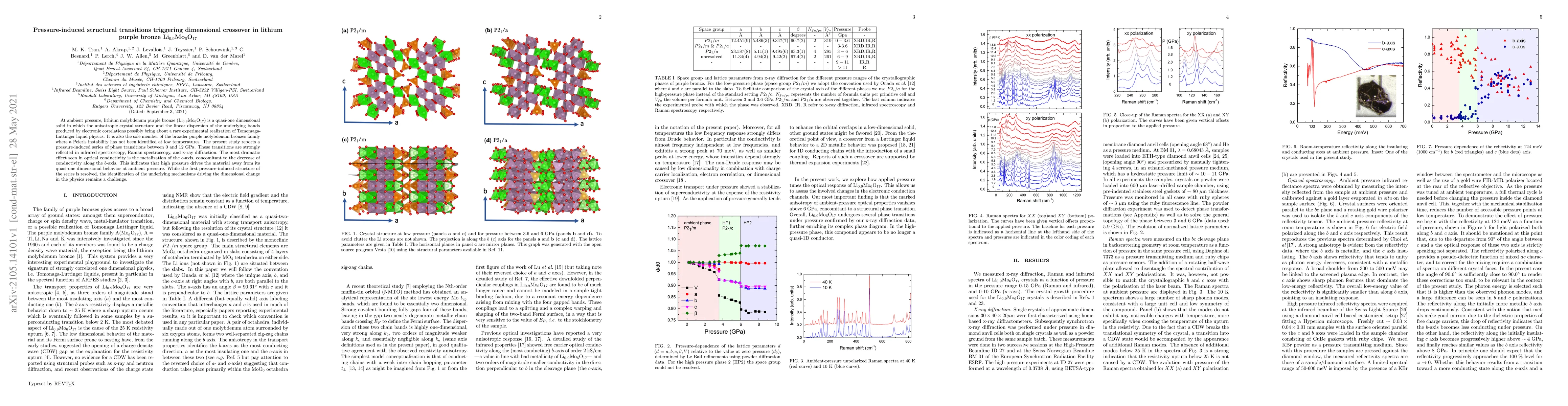 Researchers studied lithium purple bronze under pressure, discovering a series of phase transitions that transform its quasi-one-dimensional behavior into a more metallic state. High-pressure experiments reveal the material's dimensional crossover and metallization in the c-axis direction.