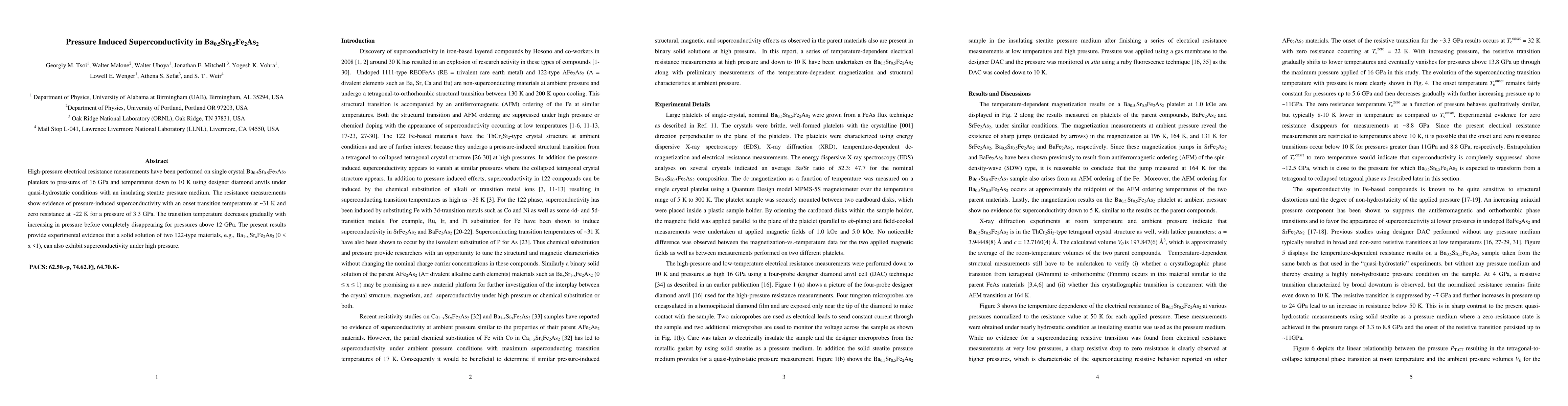 The study is novel in demonstrating pressure-induced superconductivity in a solid solution of Ba1-x.SrxFe2As2 and correlating it with the tetragonal-to-collapsed tetragonal structural phase transition.
