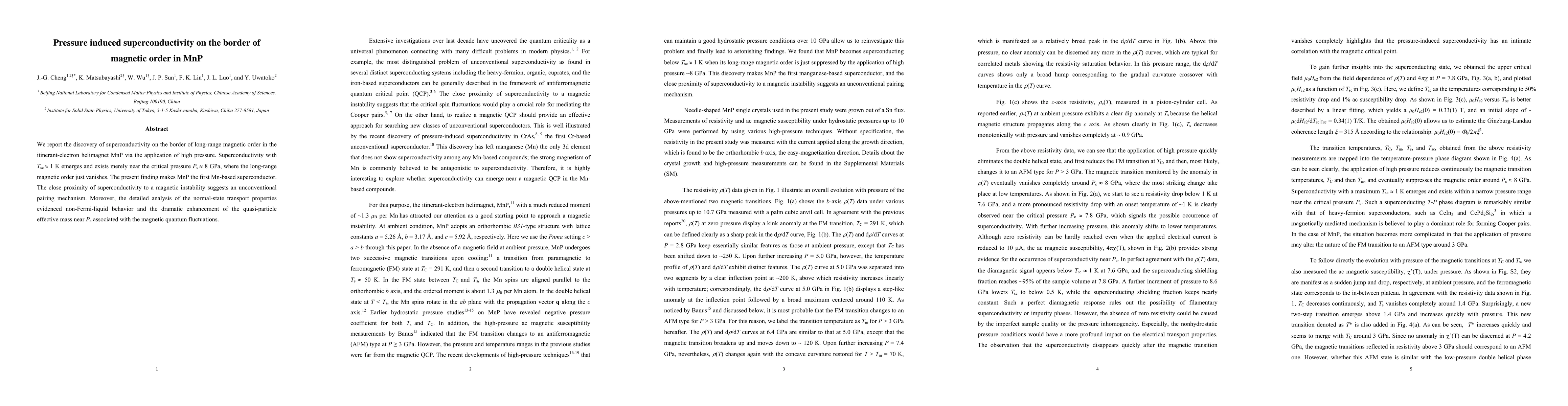 Researchers discovered superconductivity in manganese phosphide (MnP) at high pressure, near a magnetic instability, with the lowest transition temperature of 1 K emerging.