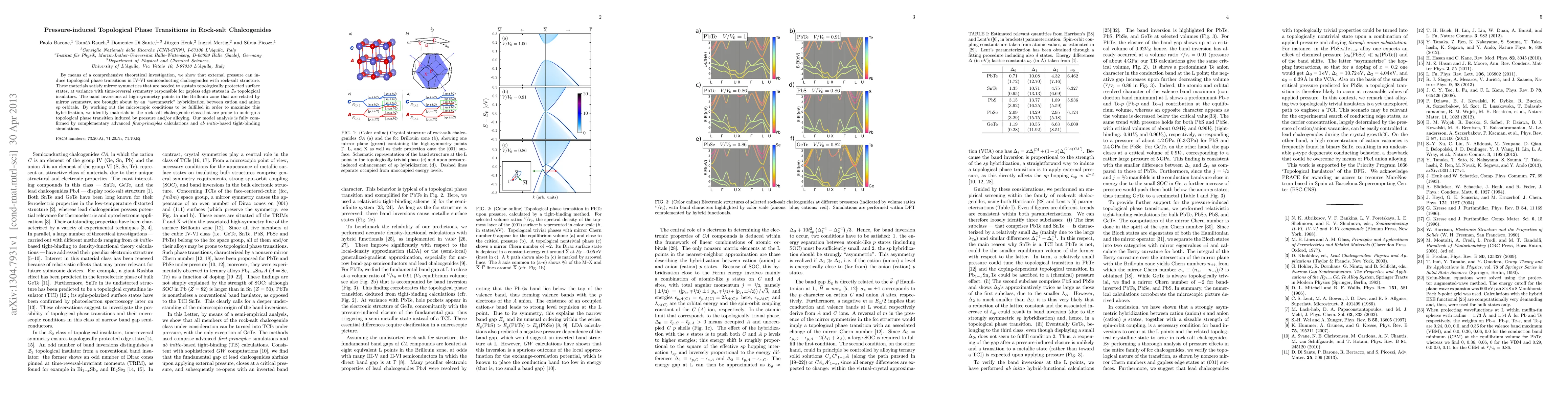 This paper demonstrates that external pressure can induce topological phase transitions in IV-VI semiconducting chalcogenides with rock-salt structure, leading to topologically protected surface states due to mirror symmetry. The study identifies specific materials in this class that can undergo such transitions, confirmed by first-principles calculations and ab initio simulations.